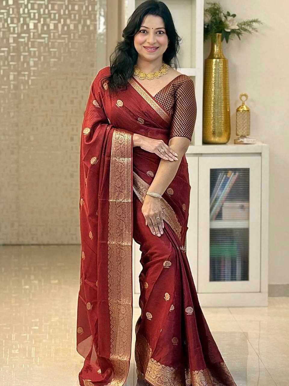 Experience timeless tradition with this luxurious Soft Banarasi Silk Saree, designed to give you a royal and graceful look for every special occasion.