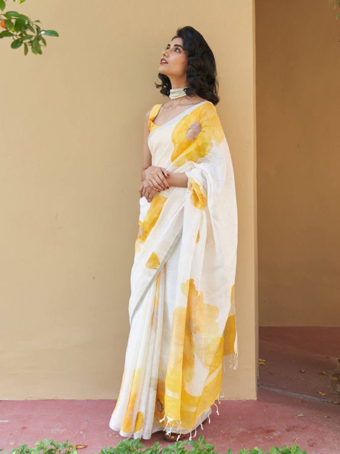 Reviews for KPW 345 Yellow Beautiful Digital Printed Saree