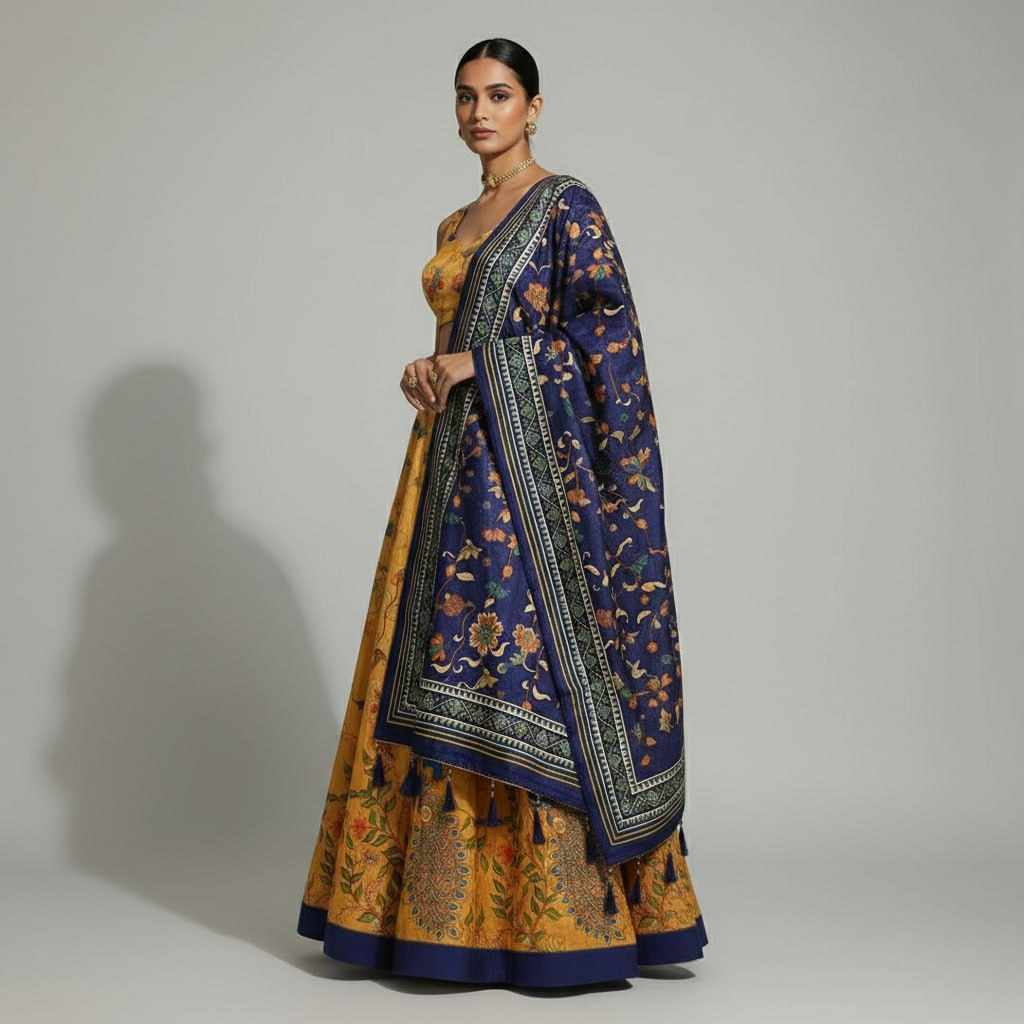| Name : | PIYU 21-2 Silk Digital Print Yellow Lehnga |