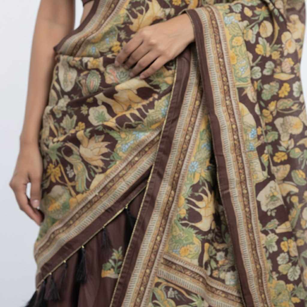 PIYU 23-2 Silk Digital Print Brown Lehnga