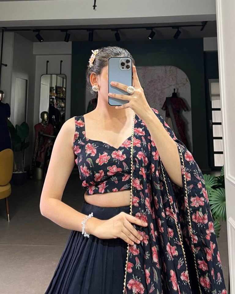 | Name : | PIYU 27-1 Silk Digital print Black Lehnga |