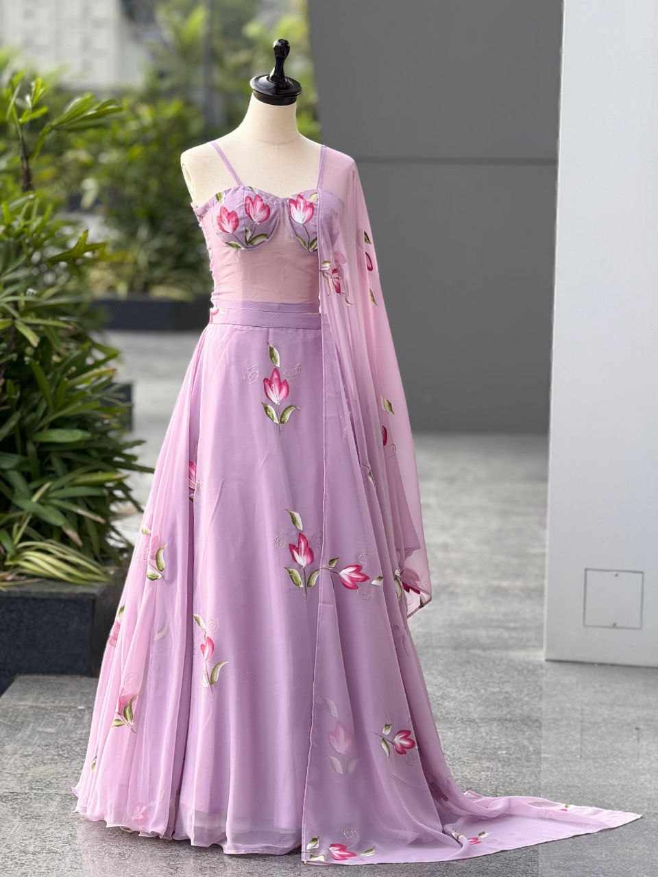 Lehenga - Pure Georgette hand painted lehenga